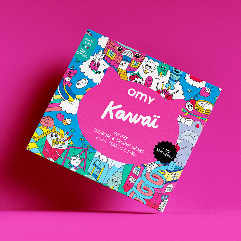 Plongez dans un univers ultra-cute inspiré par le style japonais Kawaii avec ce poster géant « Cherche & Trouve » de la marque OMY. Il présente des centaines de petits personnages, objets mignons et scènes à observer, et s’accompagne d’environ 100 stickers pour prolonger le jeu. Le format 70 × 100 cm permet de le déplier au sol, de le partager ou de l’accrocher une fois terminé. Conçu et fabriqué en France, dans un esprit ludique et décoratif, il marie jeu d’observation, créativité et habillage de mur. À La Réunion, il constitue une activité familiale ou un élément déco fun pour chambre ou coin loisirs.